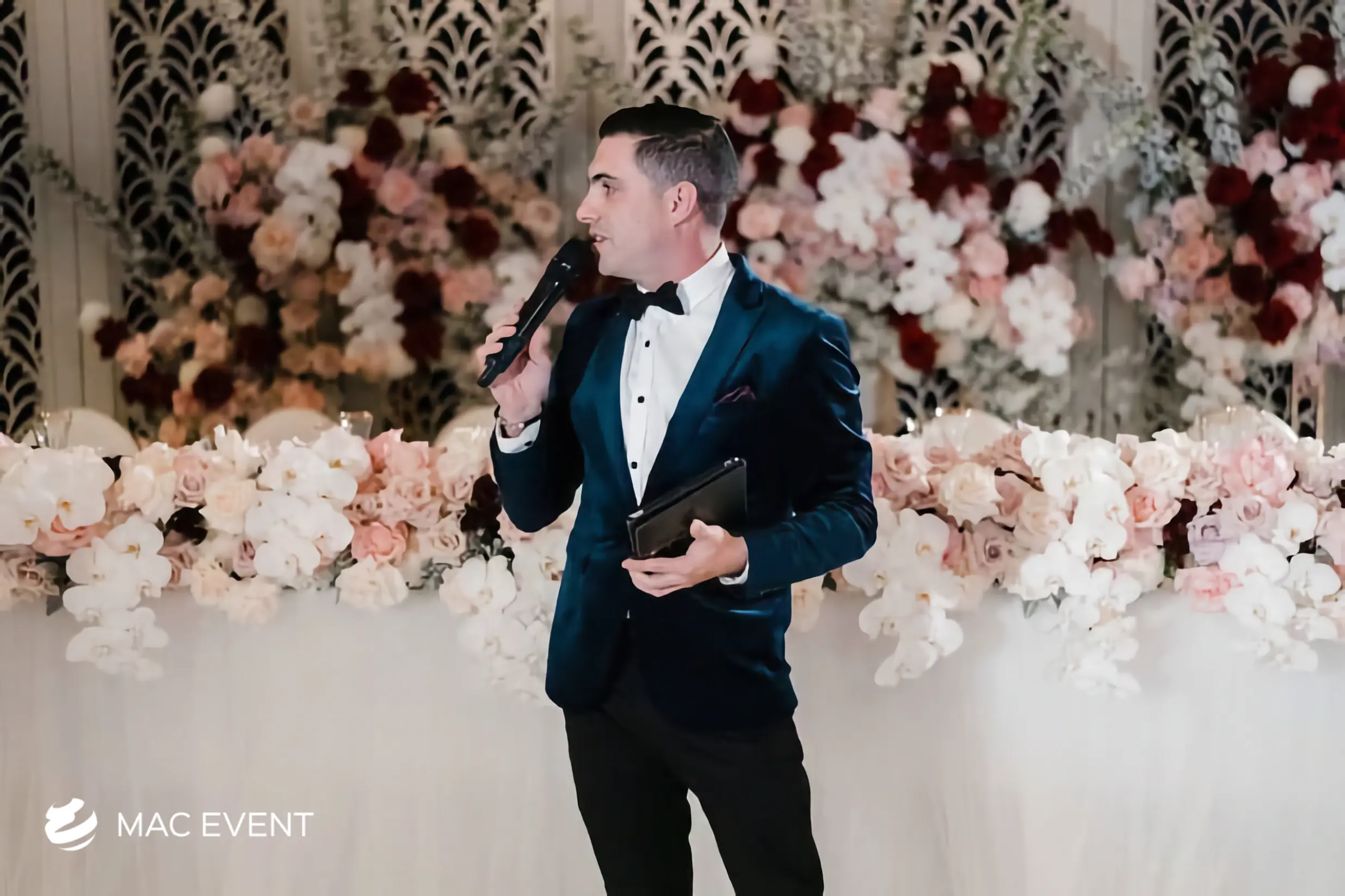 Master of ceremonies for weddings, private parties and corporate events. Bilingual emcee, timeline control, vendor coordination, professional hosting.